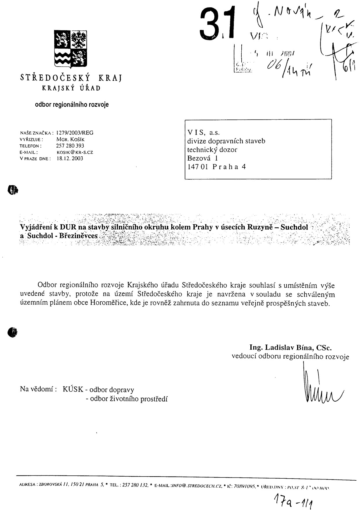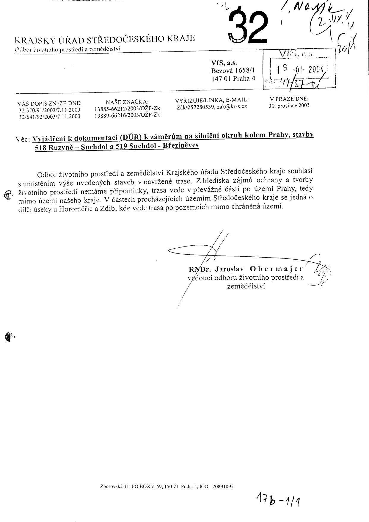 Doklady k návrhu na vydání rozhodnutí o umístění stavby SOKP 519